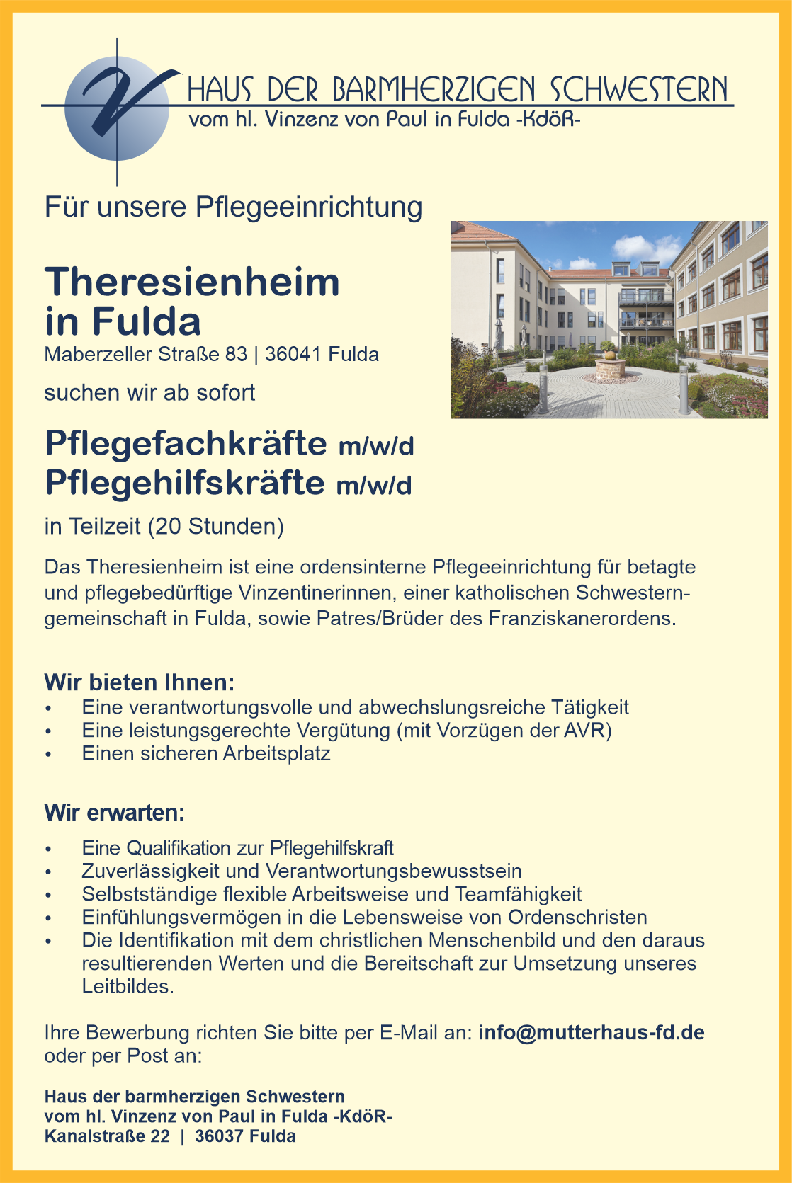 Für unsere Pflegeeinrichtung Theresienheim in Fulda suchen wir ab sofort: